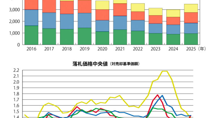 ■概況 首都圏の競売物件数は、長年にわたり減少傾向が続いてきましたが、2025年は増加に転じました。一方、落札率は低下傾向にあり、およそ3年間減少が続いていた入札本数は、2025年下期に入り横ばいからやや増加しています。また、落札価格は下落傾向が続いていましたが、2025年下期は上期と比べてやや上昇しました。 ■物件数の増加 2025年の首都圏(1都7県)の競売物件数は、前年と比べて約12%増加し […]