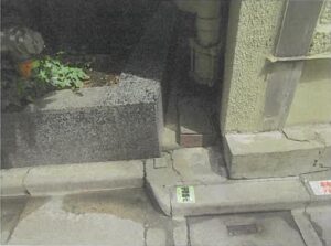 四谷三丁目、駅から50メートルの土地。地積は4.56平方メートル、ビルとビルの間の長さ11メートルの狭小な帯状地である。境界不明確で、隣地建物の貯水タンク、揚水ポンプ、エアコン室外機が置かれ、配管、汚水桝等が埋設されているの可能性がある。評価額は平方メートルあたりの標準画地価格は455万円であるが、単独利用が困難であり約136万円で約620万円、売却基準価額は4,980,000円。現所有者は平成25年に相続人から売買で取得している。