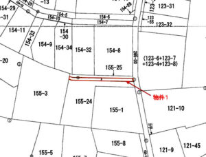 横浜市旭区、通路の一部1.1メートルx23.5メートルの帯状地である。他の筆と一体で、本件所有者が所有するアパートなどへの通路として使用されており、通行を目的とした地役権が設定されている。接面道路は1.8メートル幅の二項道路。評価額は平方メートルあたり約6,000円で15万円、売却基準価額は80,000円。これでは手続費用に足りずに無剰余で取消ある。そのため、申立人であるこの土地の隣地に居住している個人から民事執行法63条2項1号の申出がなされその金額は5,500,000円とかなり高額。